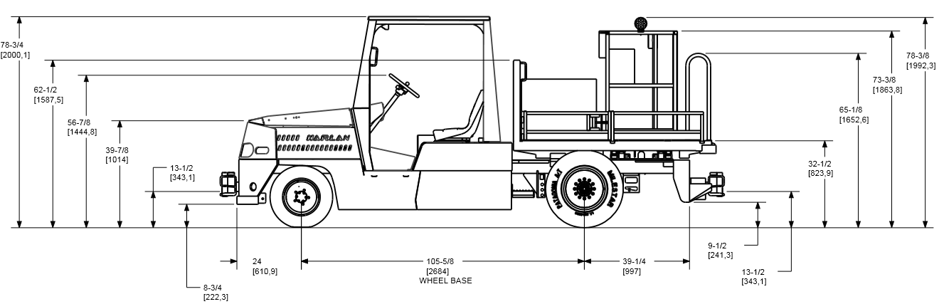 | Height w/ Cab | 78 3/16" (1986mm) |